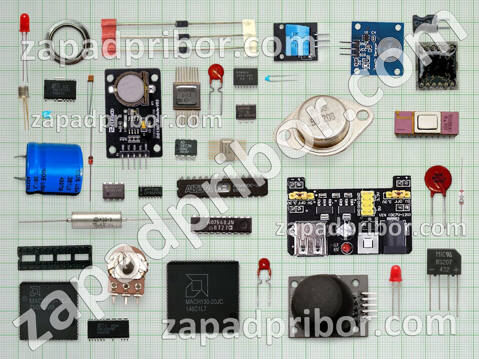 Кроме этих радиодеталей на нашем сайте вы сможете найти большой перечень компонентов. Осуществляйте поиск по основным типам радиодеталей таких как индуктивность, адаптер, тиристор, конденсатор, реле, светодиод, диодный мост, колодки, соединитель, контакты, преобразователь, экран, транзистор, дисплей, усилитель, тумблер, переключатель, резистор, микросхема, индикатор, фотодиод, диод, резонатор, дроссель, разъем, трансформатор, датчик, кнопка и другие.