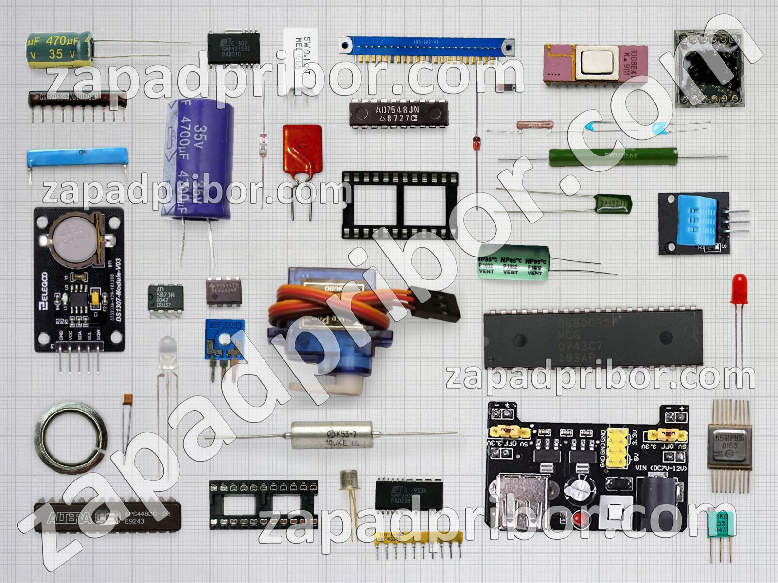 Кроме этих радиодеталей на нашем сайте вы сможете найти большой перечень компонентов. Осуществляйте поиск по основным типам радиодеталей таких как колодки, кнопка, микросхема, тумблер, индуктивность, реле, индикатор, резонатор, тиристор, переключатель, разъем, транзистор, трансформатор, резистор, датчик, экран, усилитель, преобразователь, соединитель, фотодиод, контакты, светодиод, дроссель, диодный мост, дисплей, конденсатор, адаптер, диод и другие.