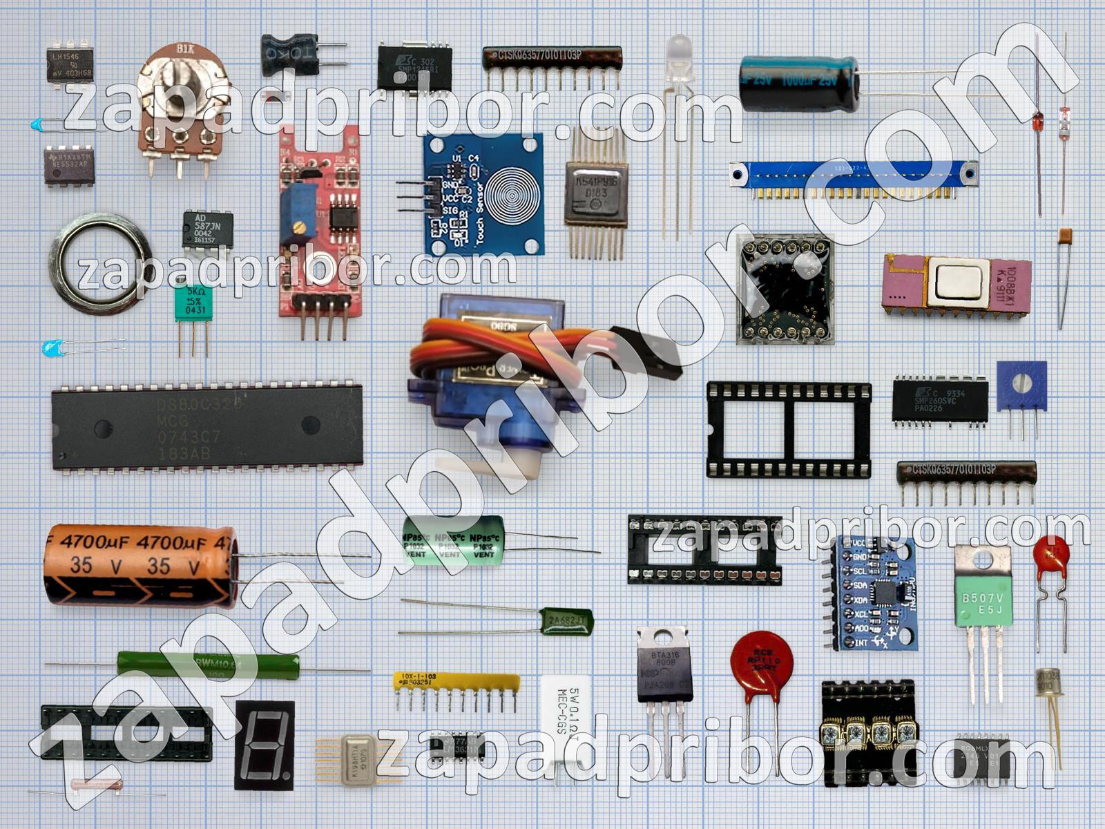 Кроме этих радиодеталей на нашем сайте вы сможете найти большой перечень компонентов. Осуществляйте поиск по основным типам радиодеталей таких как соединитель, светодиод, индуктивность, усилитель, индикатор, резонатор, реле, тиристор, микросхема, дроссель, диодный мост, разъем, преобразователь, контакты, транзистор, диод, экран, датчик, тумблер, конденсатор, колодки, кнопка, дисплей, резистор, трансформатор, переключатель, фотодиод, адаптер и другие.