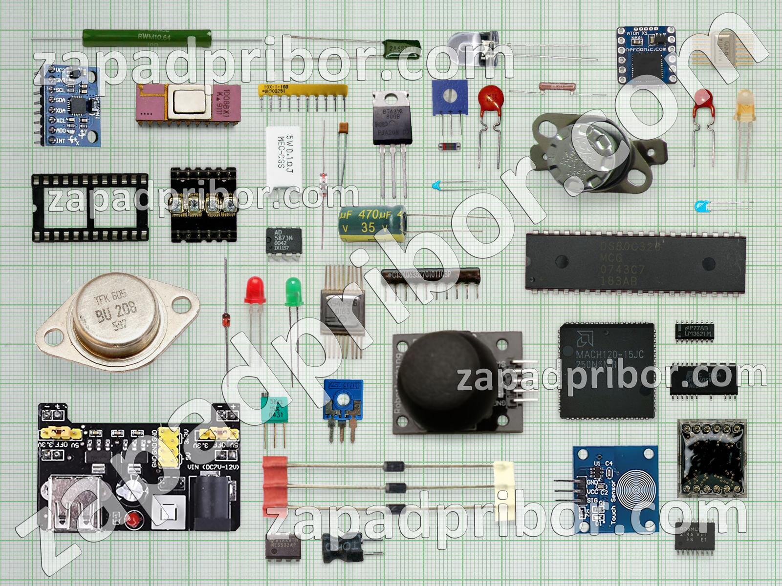 Кроме этих радиодеталей на нашем сайте вы сможете найти большой перечень компонентов. Осуществляйте поиск по основным типам радиодеталей таких как датчик, реле, диод, экран, микросхема, преобразователь, колодки, дроссель, светодиод, трансформатор, фотодиод, усилитель, тиристор, адаптер, диодный мост, контакты, резонатор, индуктивность, резистор, переключатель, транзистор, кнопка, индикатор, разъем, конденсатор, тумблер, дисплей, соединитель и другие.