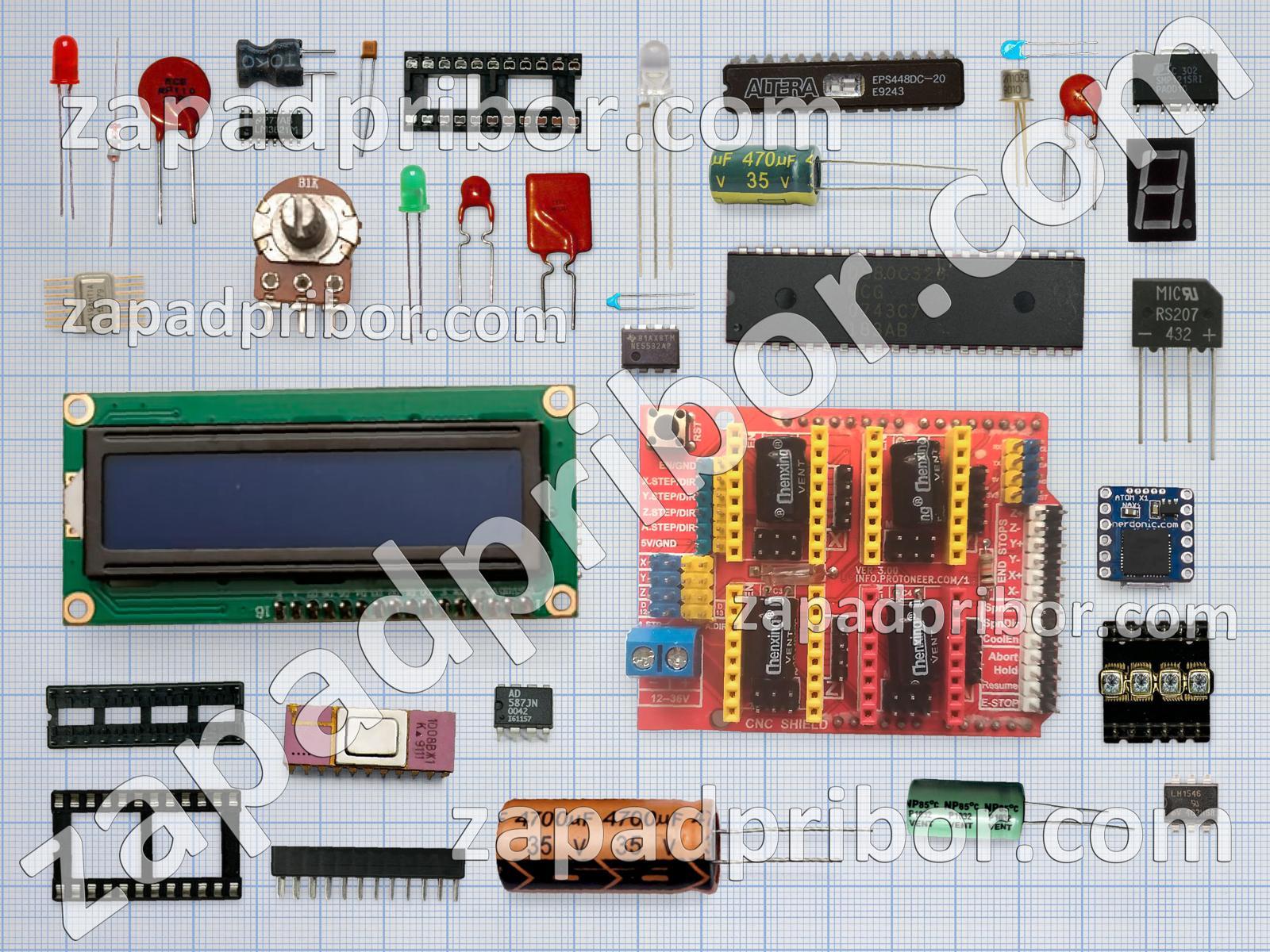 Кроме этих радиодеталей на нашем сайте вы сможете найти большой перечень компонентов. Осуществляйте поиск по основным типам радиодеталей таких как диодный мост, тумблер, трансформатор, экран, адаптер, транзистор, кнопка, фотодиод, соединитель, конденсатор, резистор, дроссель, контакты, датчик, колодки, индуктивность, резонатор, разъем, усилитель, реле, индикатор, микросхема, переключатель, диод, тиристор, преобразователь, светодиод, дисплей и другие.