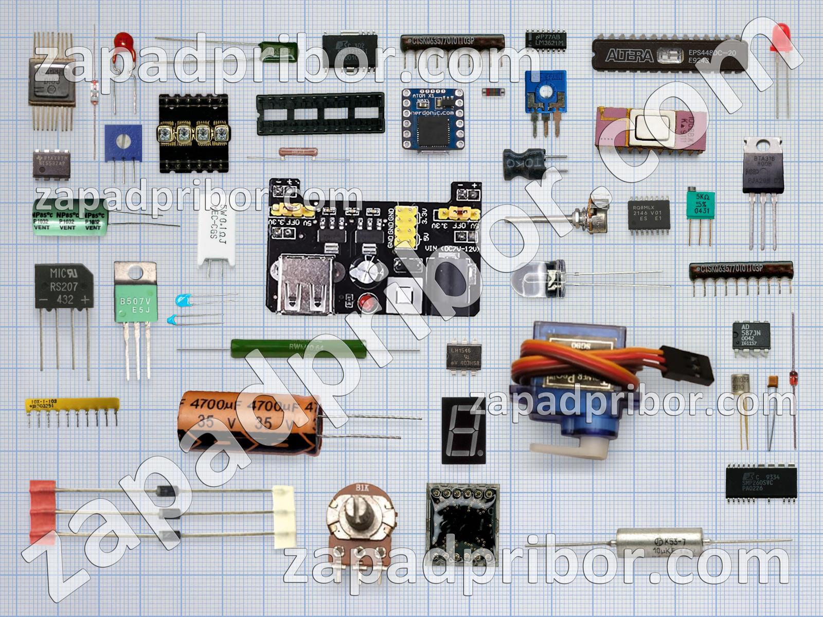 Кроме этих радиодеталей на нашем сайте вы сможете найти большой перечень компонентов. Осуществляйте поиск по основным типам радиодеталей таких как трансформатор, тумблер, резонатор, конденсатор, фотодиод, усилитель, диодный мост, датчик, транзистор, диод, разъем, индикатор, тиристор, светодиод, контакты, дисплей, преобразователь, экран, реле, переключатель, кнопка, колодки, адаптер, соединитель, дроссель, индуктивность, микросхема, резистор и другие.