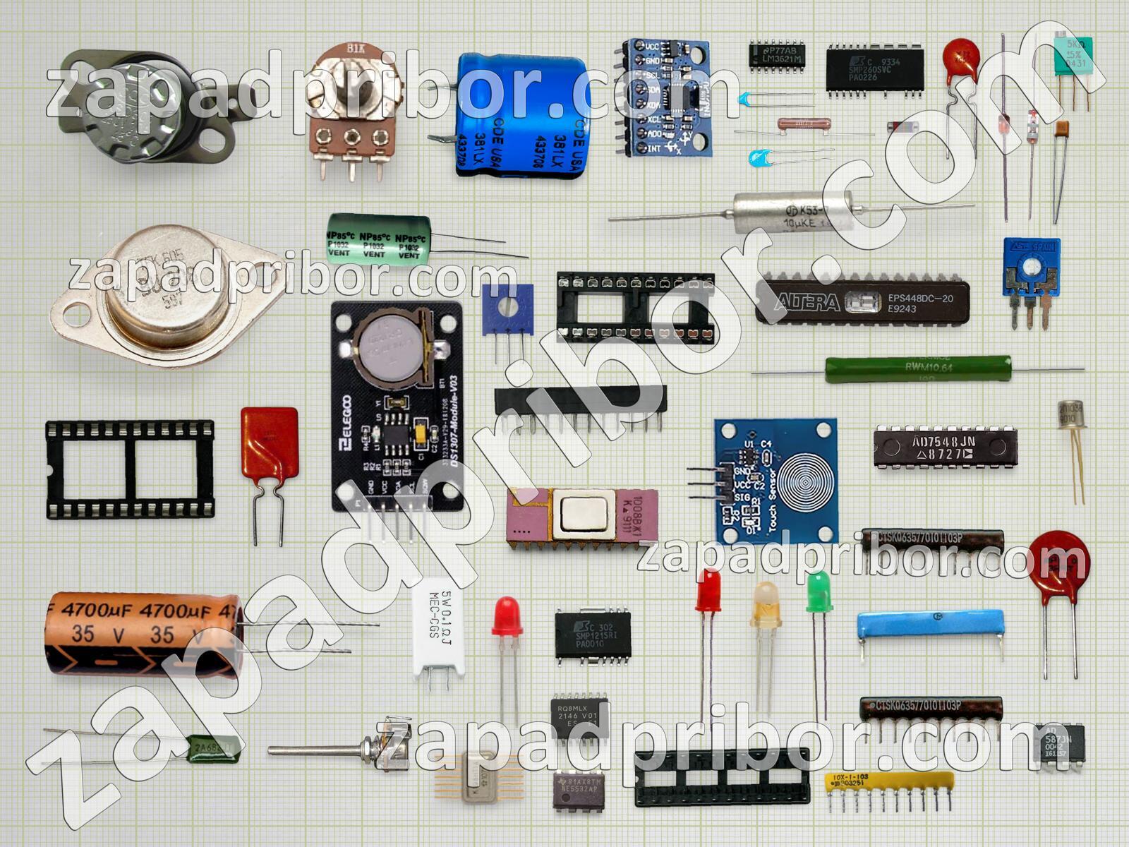 Кроме этих радиодеталей на нашем сайте вы сможете найти большой перечень компонентов. Осуществляйте поиск по основным типам радиодеталей таких как конденсатор, резистор, индуктивность, диодный мост, транзистор, датчик, дроссель, преобразователь, светодиод, диод, индикатор, фотодиод, кнопка, колодки, экран, усилитель, дисплей, разъем, тумблер, соединитель, резонатор, адаптер, тиристор, трансформатор, переключатель, контакты, микросхема, реле и другие.