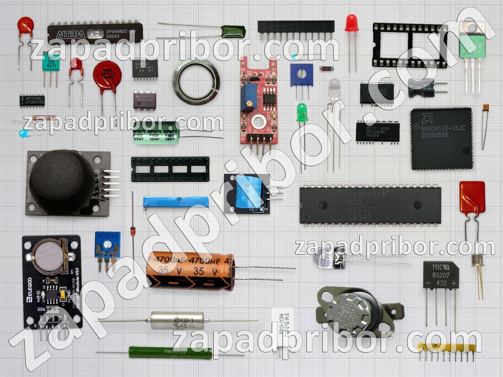 Кроме этих радиодеталей на нашем сайте вы сможете найти большой перечень компонентов. Осуществляйте поиск по основным типам радиодеталей таких как резистор, реле, дисплей, диодный мост, индуктивность, индикатор, экран, преобразователь, колодки, тумблер, переключатель, конденсатор, микросхема, датчик, адаптер, резонатор, кнопка, транзистор, соединитель, трансформатор, диод, дроссель, фотодиод, светодиод, тиристор, усилитель, разъем, контакты и другие.