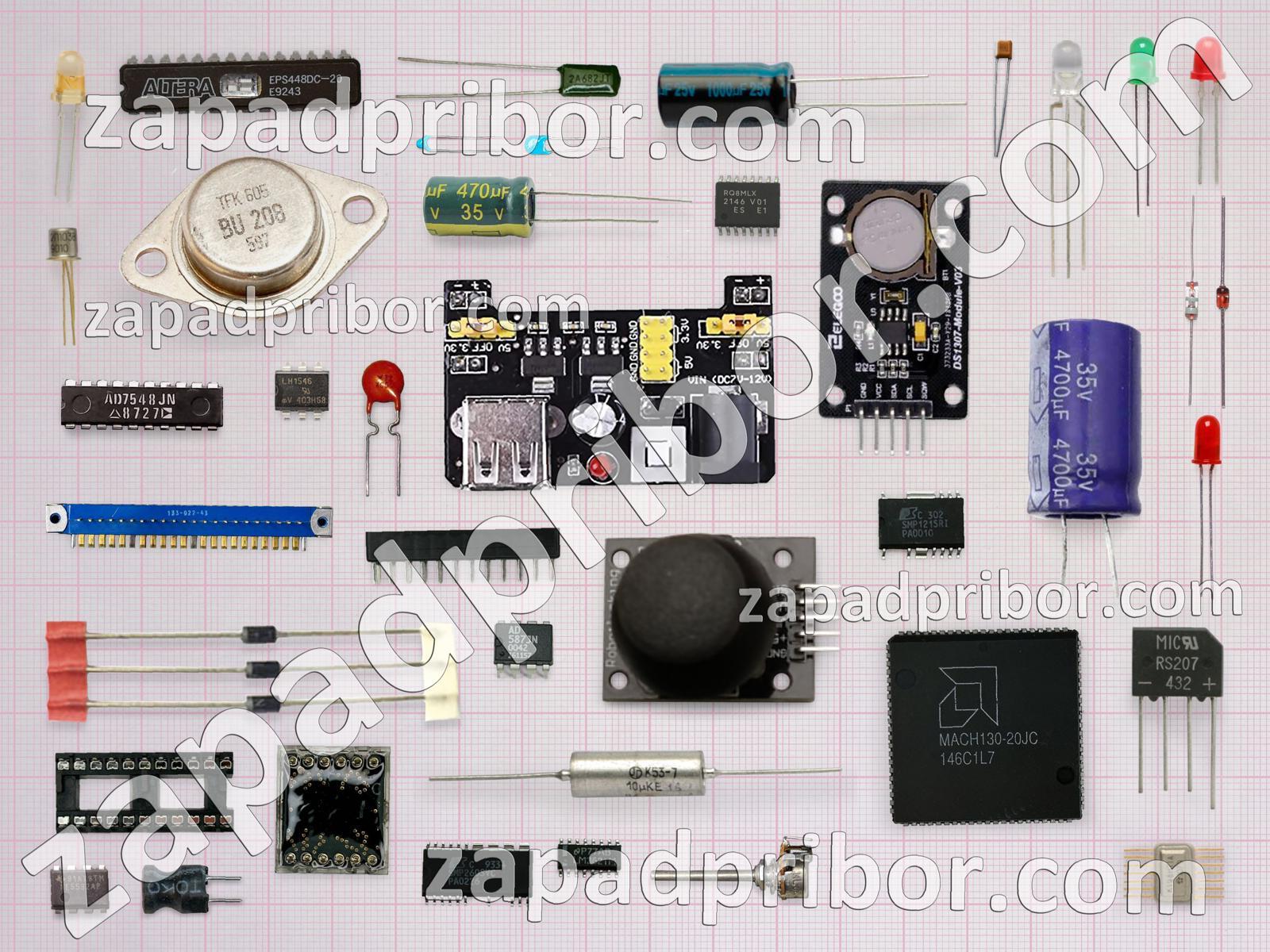 Кроме этих радиодеталей на нашем сайте вы сможете найти большой перечень компонентов. Осуществляйте поиск по основным типам радиодеталей таких как тумблер, адаптер, преобразователь, соединитель, микросхема, диодный мост, дисплей, диод, резонатор, дроссель, контакты, усилитель, светодиод, датчик, конденсатор, переключатель, разъем, реле, колодки, индикатор, транзистор, фотодиод, тиристор, экран, индуктивность, кнопка, трансформатор, резистор и другие.