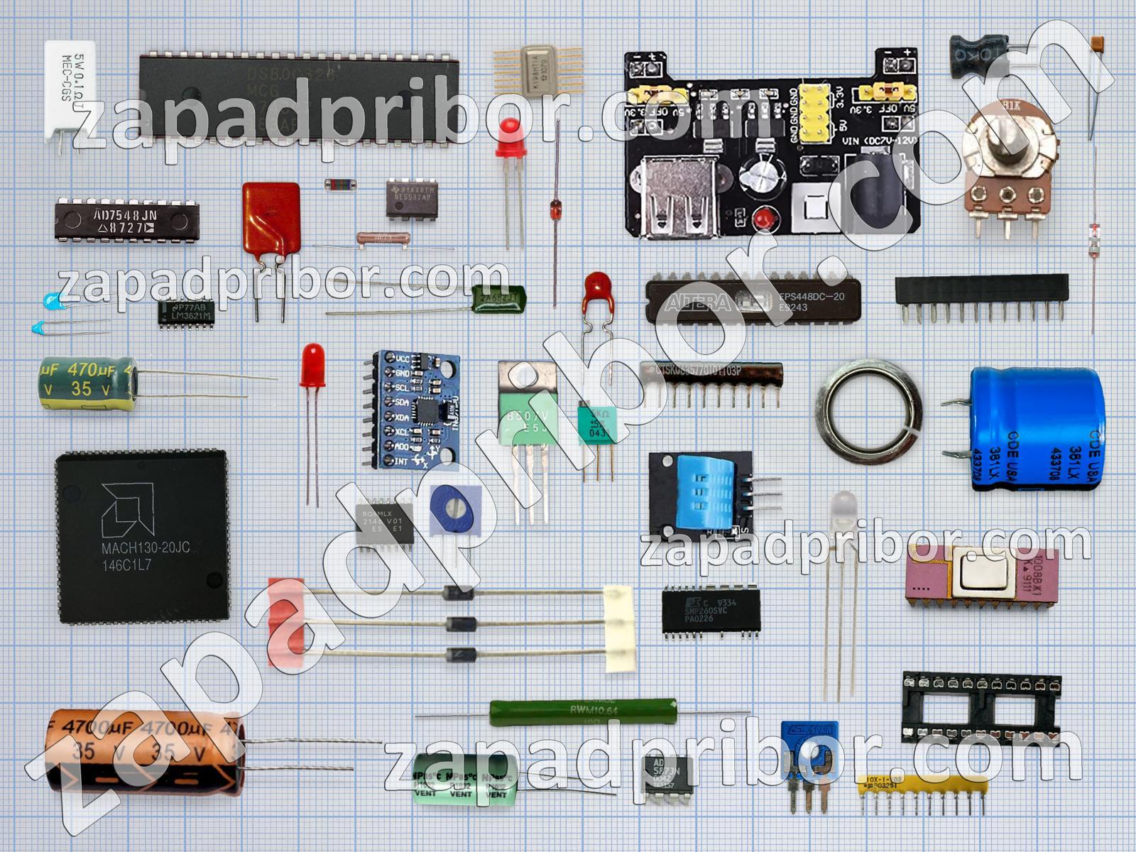 Кроме этих радиодеталей на нашем сайте вы сможете найти большой перечень компонентов. Осуществляйте поиск по основным типам радиодеталей таких как контакты, транзистор, тиристор, реле, дроссель, колодки, фотодиод, кнопка, переключатель, трансформатор, диод, резонатор, соединитель, преобразователь, адаптер, тумблер, индуктивность, индикатор, резистор, разъем, усилитель, микросхема, экран, датчик, светодиод, дисплей, конденсатор, диодный мост и другие.