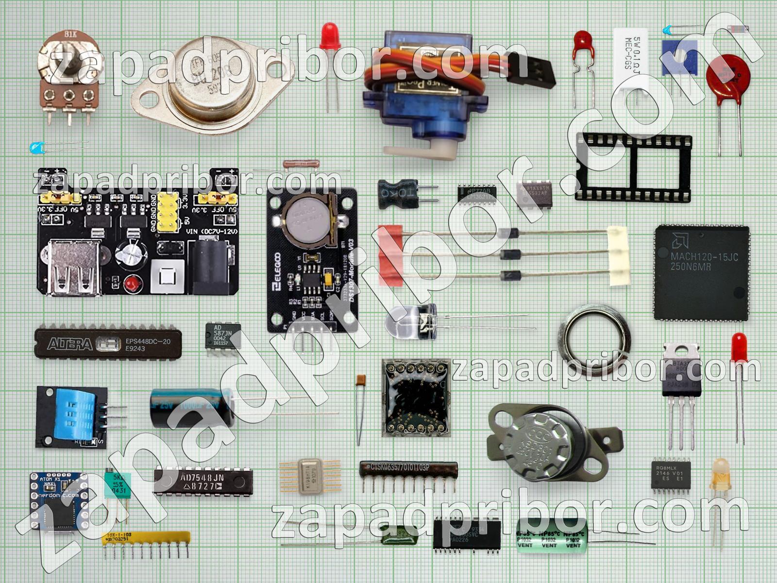 Кроме этих радиодеталей на нашем сайте вы сможете найти большой перечень компонентов. Осуществляйте поиск по основным типам радиодеталей таких как резонатор, светодиод, диодный мост, тиристор, преобразователь, тумблер, индикатор, усилитель, индуктивность, дисплей, разъем, датчик, трансформатор, кнопка, конденсатор, реле, соединитель, колодки, экран, дроссель, фотодиод, адаптер, контакты, переключатель, диод, резистор, микросхема, транзистор и другие.