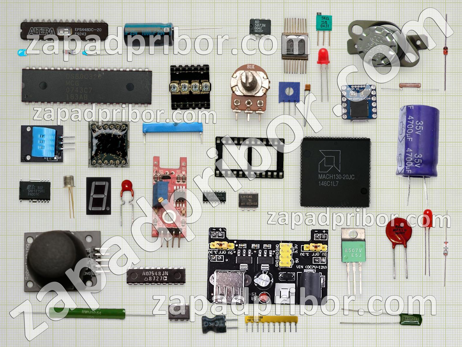 Кроме этих радиодеталей на нашем сайте вы сможете найти большой перечень компонентов. Осуществляйте поиск по основным типам радиодеталей таких как транзистор, фотодиод, резонатор, дроссель, разъем, колодки, переключатель, диод, адаптер, микросхема, индикатор, кнопка, трансформатор, тумблер, диодный мост, индуктивность, резистор, контакты, тиристор, датчик, преобразователь, усилитель, конденсатор, светодиод, экран, соединитель, реле, дисплей и другие.
