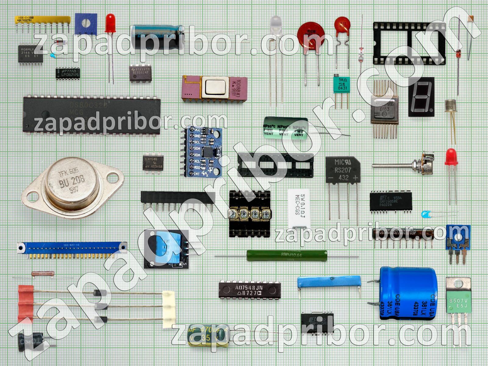 Кроме этих радиодеталей на нашем сайте вы сможете найти большой перечень компонентов. Осуществляйте поиск по основным типам радиодеталей таких как тумблер, колодки, реле, транзистор, индикатор, диод, трансформатор, светодиод, экран, преобразователь, усилитель, дроссель, фотодиод, диодный мост, датчик, резонатор, индуктивность, кнопка, соединитель, резистор, микросхема, тиристор, конденсатор, разъем, переключатель, дисплей, контакты, адаптер и другие.