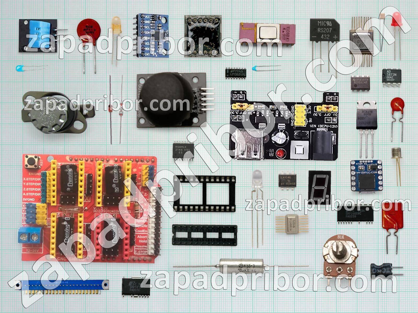 Кроме этих радиодеталей на нашем сайте вы сможете найти большой перечень компонентов. Осуществляйте поиск по основным типам радиодеталей таких как датчик, дроссель, резистор, микросхема, контакты, конденсатор, разъем, преобразователь, колодки, экран, индуктивность, фотодиод, светодиод, транзистор, тумблер, диодный мост, тиристор, резонатор, соединитель, усилитель, реле, трансформатор, индикатор, адаптер, кнопка, дисплей, переключатель, диод и другие.