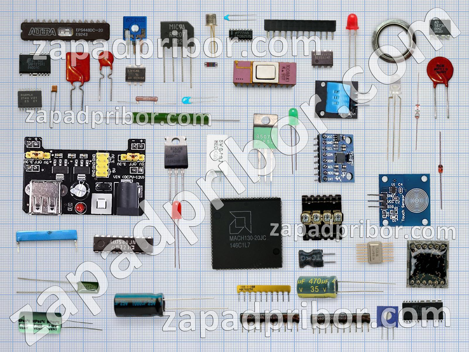 Кроме этих радиодеталей на нашем сайте вы сможете найти большой перечень компонентов. Осуществляйте поиск по основным типам радиодеталей таких как диодный мост, резистор, адаптер, соединитель, дроссель, контакты, датчик, дисплей, резонатор, преобразователь, индикатор, конденсатор, индуктивность, разъем, переключатель, транзистор, диод, трансформатор, кнопка, реле, тиристор, микросхема, тумблер, колодки, экран, усилитель, фотодиод, светодиод и другие.