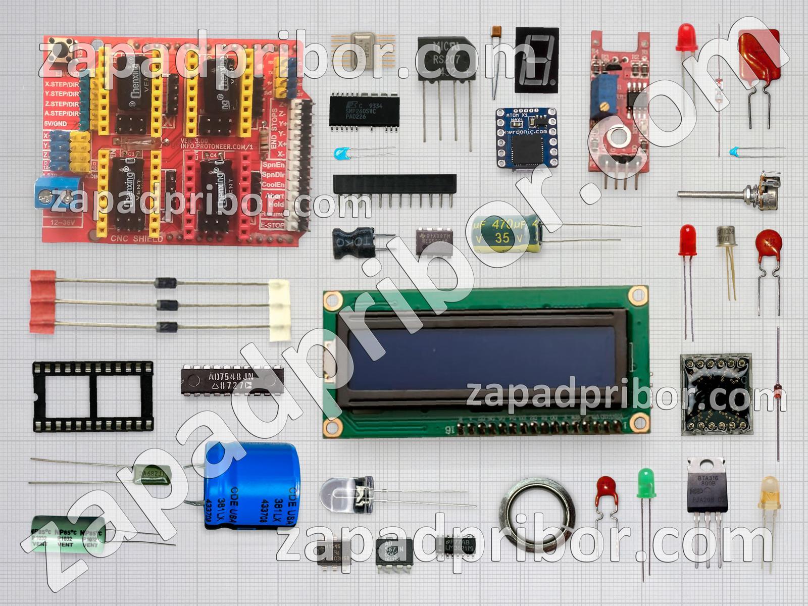 Кроме этих радиодеталей на нашем сайте вы сможете найти большой перечень компонентов. Осуществляйте поиск по основным типам радиодеталей таких как дисплей, усилитель, резонатор, разъем, фотодиод, конденсатор, дроссель, колодки, резистор, трансформатор, реле, светодиод, датчик, соединитель, преобразователь, тиристор, транзистор, экран, переключатель, адаптер, кнопка, диодный мост, микросхема, тумблер, диод, индуктивность, индикатор, контакты и другие.