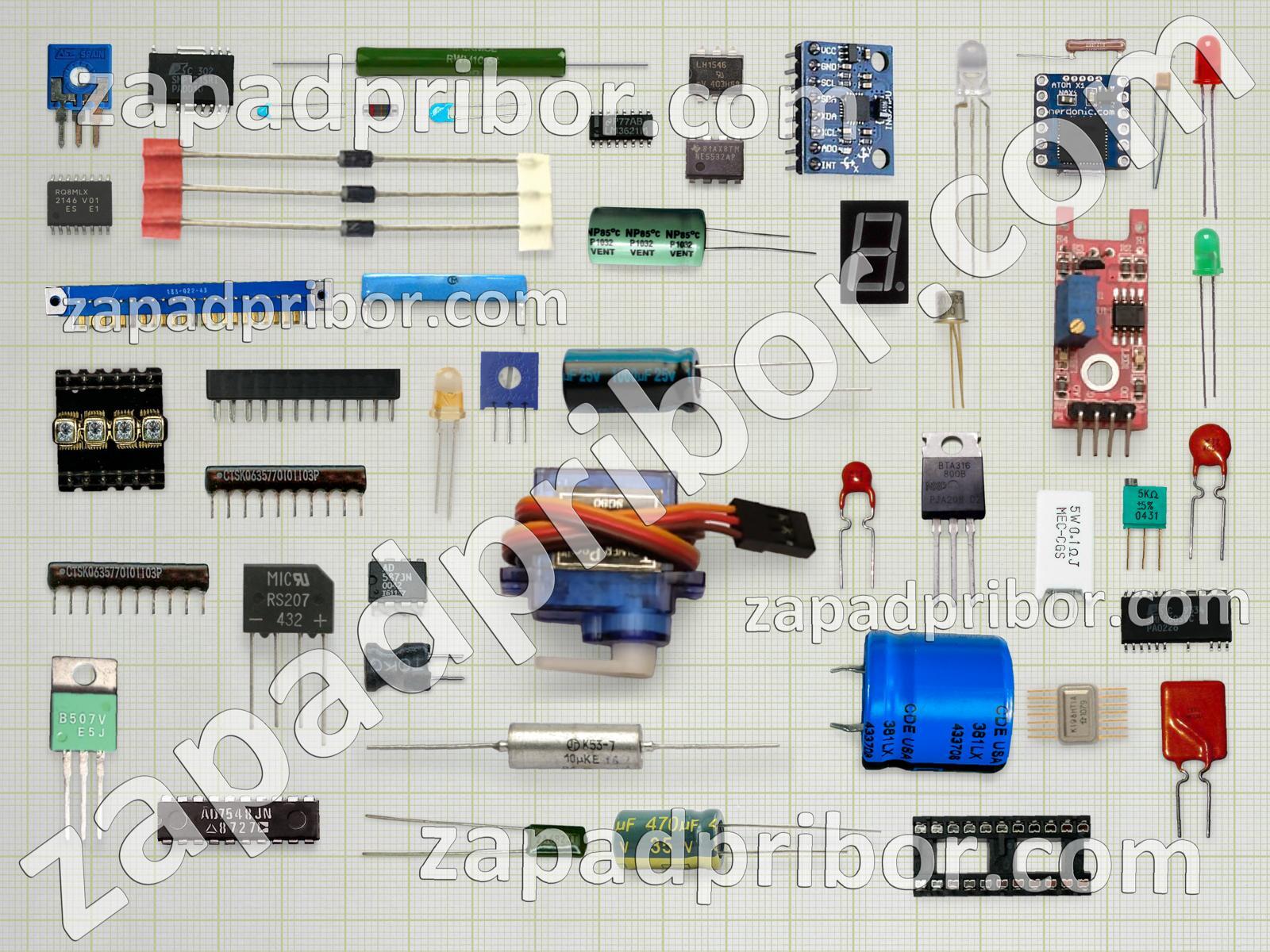 Кроме этих радиодеталей на нашем сайте вы сможете найти большой перечень компонентов. Осуществляйте поиск по основным типам радиодеталей таких как диод, резистор, контакты, преобразователь, индуктивность, переключатель, реле, светодиод, конденсатор, усилитель, датчик, резонатор, разъем, кнопка, транзистор, тиристор, диодный мост, микросхема, трансформатор, дисплей, соединитель, индикатор, адаптер, колодки, экран, фотодиод, тумблер, дроссель и другие.