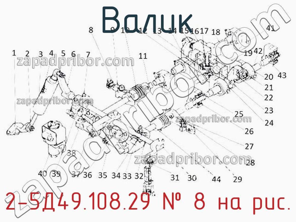 Наш отдел технического контроля гарантирует отсутствие брака или других несоответствий в технической документации или комплектации всех валиков представленных на нашем сайте. Чтобы заказать 2-5Д49.108.29 обращайтесь в отдел продаж. Чтобы узнать цену, наличие, сроки поставки, срок гарантии и другие вопросы позвоните по телефонам указанным в контактах или оставьте заявку через форму обратной связи. Валик, номер 8 на чертеже, Управление топливными насосами 1А-6Д49.108спч и другие запасные части для 49 (Ч 26/26) , а также другие валики и похожие изделия представлены на сайте zapadpribor.com.