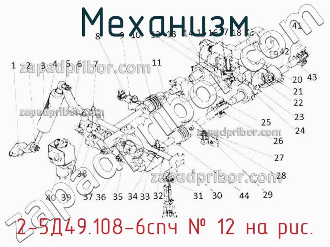 Компания гарантирует отсутствие каких-либо проблем у всех механизмов, их комплектации и документации. Обратитесь в наш отдел продаж, если у вас есть потребность купить 2-5Д49.108-6спч. Наши менеджеры всегда на связи, чтобы ответить на все ваши вопросы. Механизм отключения, номер 12 на чертеже, Управление топливными насосами 1А-6Д49.108спч и другие запасные части для 49 (Ч 26/26) , а также другие механизмы и похожие изделия представлены на сайте zapadpribor.com.