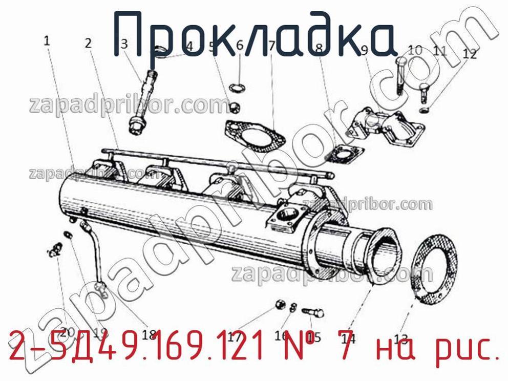Наш отдел технического контроля дает гарантию отсутствия брака или других несоответствий в технической документации у всех прокладок представленных на нашем сайте. Чтобы приобрести 2-5Д49.169.121 обратитесь в отдел продаж. Информацию о цене, наличии, сроках поставки, гарантии можно узнать у наших менеджеров. Прокладка, номер 7 на чертеже, Коллекторы выпускные 3А-6Д49.169спч и другие запасные части для 49 (Ч 26/26) , а также другие прокладки и похожие изделия представлены на сайте zapadpribor.com.