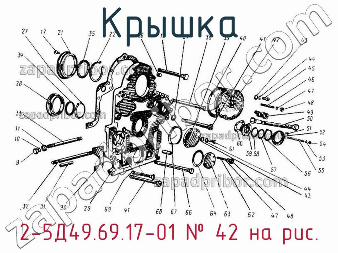 ОТК компании гарантирует отсутствие брака у всех крышек представленных на нашем сайте. Для покупки 2-5Д49.69.17-01 обратитесь в отдел продаж. Относительно информации о цене, наличии, сроках поставки, гарантии обращайтесь по телефонам, указанным в контактах или оставьте запрос через форму обратной связи. Крышка, номер 42 на чертеже, Привод распределительного вала 3А-6Д49.69спч и другие запасные части для 49 (Ч 26/26) , а также другие крышки и похожие изделия представлены на сайте zapadpribor.com.