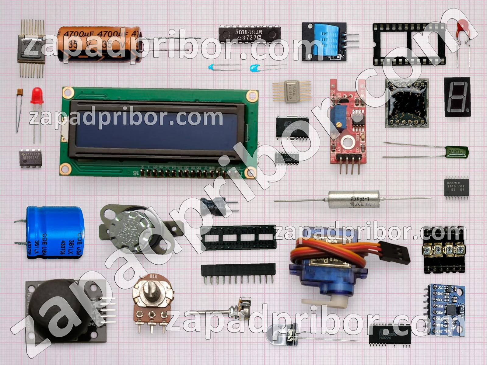 Кроме этих радиодеталей на нашем сайте вы сможете найти большой перечень компонентов. Осуществляйте поиск по основным типам радиодеталей таких как конденсатор, экран, датчик, микросхема, соединитель, тиристор, дисплей, контакты, кнопка, диодный мост, реле, транзистор, дроссель, индуктивность, преобразователь, резонатор, разъем, фотодиод, светодиод, тумблер, адаптер, индикатор, усилитель, трансформатор, переключатель, резистор, диод, колодки и другие.