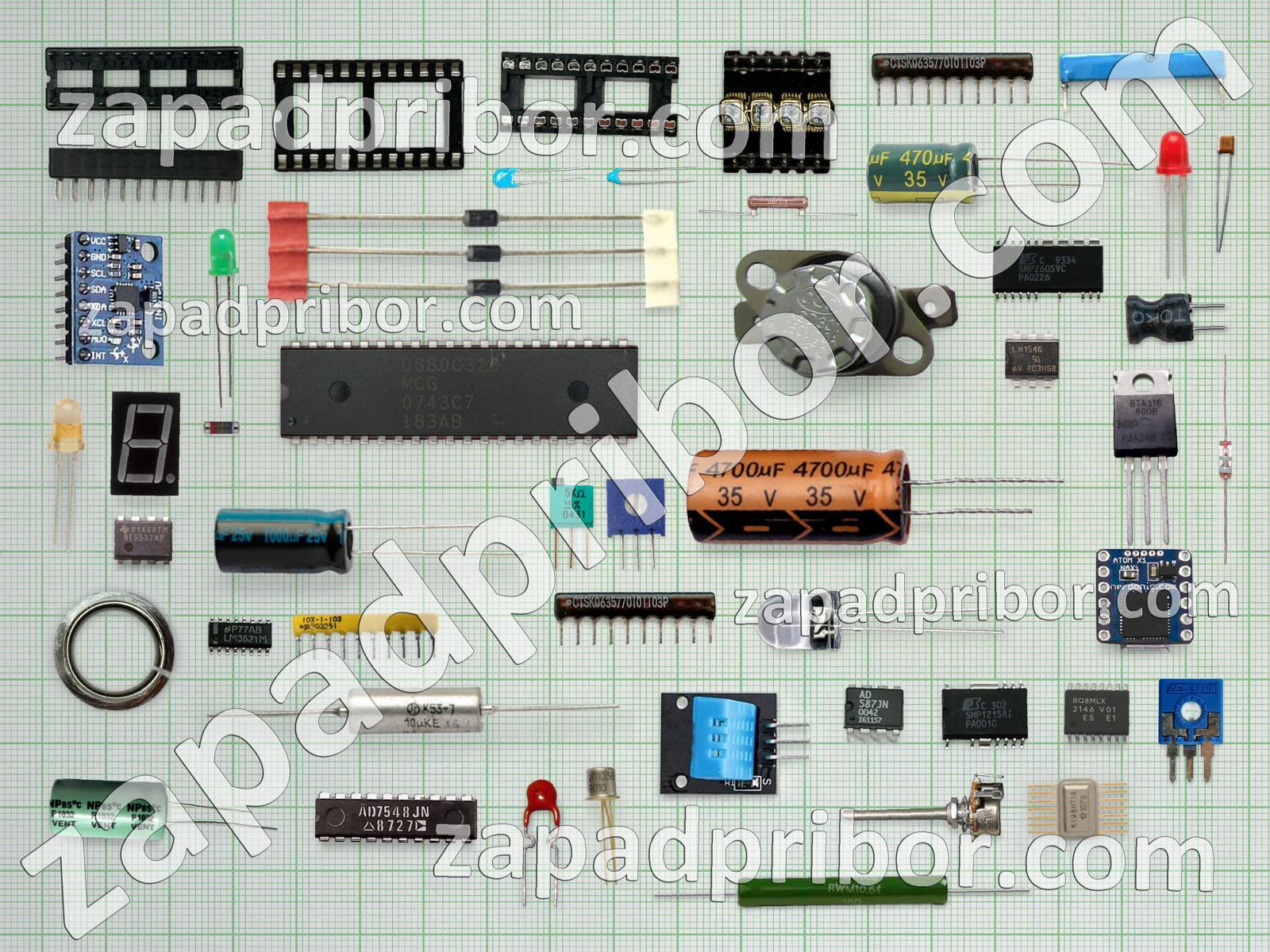 Кроме этих радиодеталей на нашем сайте вы сможете найти большой перечень компонентов. Осуществляйте поиск по основным типам радиодеталей таких как преобразователь, диод, дроссель, контакты, усилитель, индикатор, разъем, переключатель, тиристор, кнопка, адаптер, транзистор, датчик, фотодиод, дисплей, соединитель, диодный мост, светодиод, конденсатор, тумблер, трансформатор, экран, индуктивность, колодки, резистор, резонатор, микросхема, реле и другие.