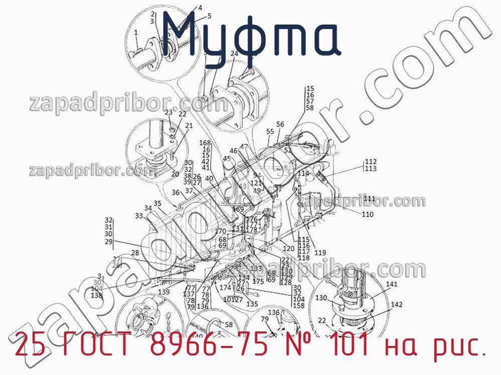 Компания со своей стороны гарантирует отсутствие каких-либо дефектов, несовершенств или неточностей у комплектации и документации муфты. 25 ГОСТ 8966-75 можно заказать, связавшись с нашим отделом продаж. Наши менеджеры всегда радостно предоставят вам всю информацию о товаре, его наличии, цене и т.д. Для этого позвоните по указанным телефонам или оставьте заявку через форму обратной связи. Муфта 25 ГОСТ 8966-75, номер 101 на чертеже, Трубопровод водяной системы часть 1 и другие запасные части для , а также другие муфты и похожие изделия представлены на сайте zapadpribor.com.