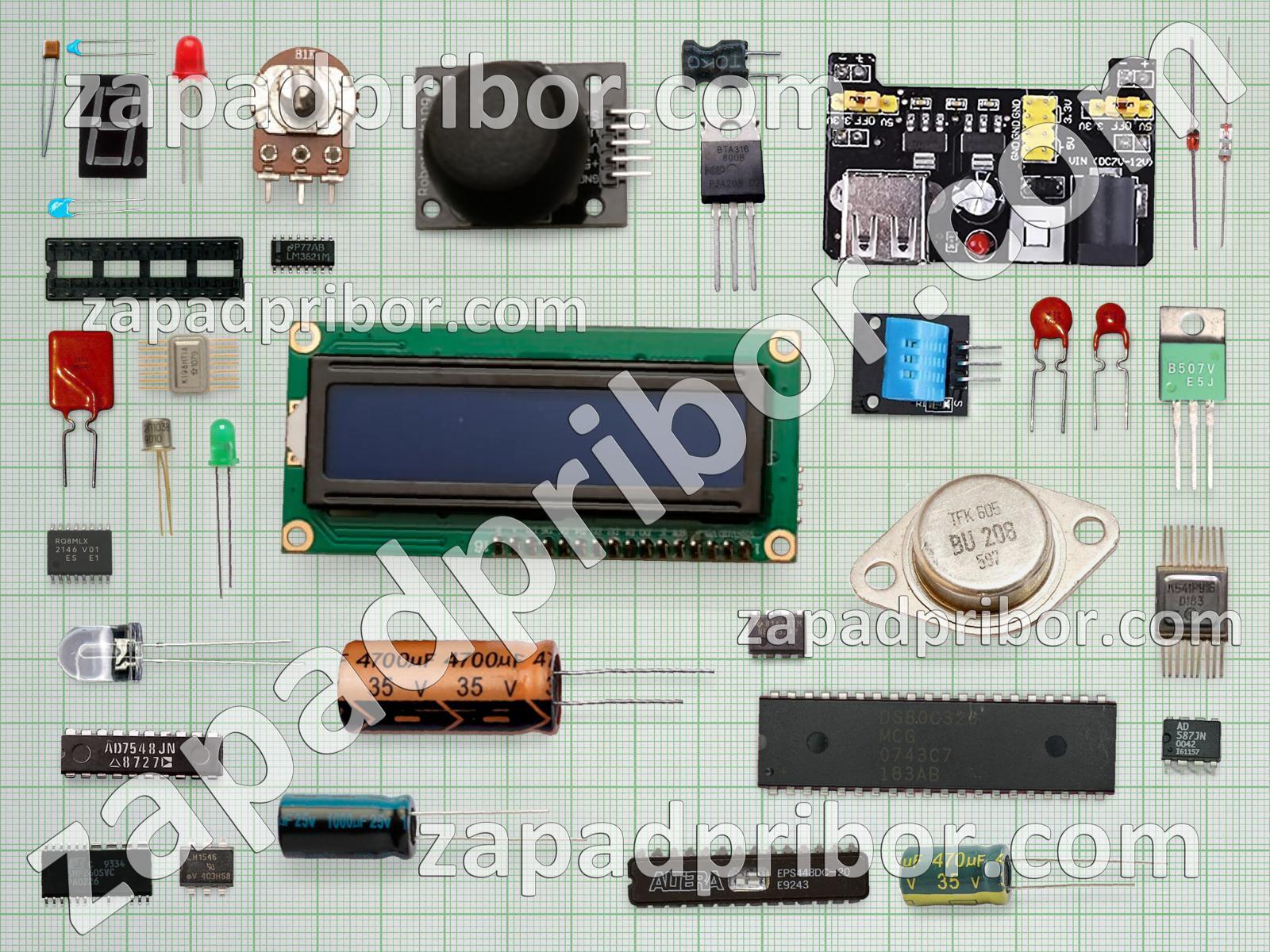 Кроме этих радиодеталей на нашем сайте вы сможете найти большой перечень компонентов. Осуществляйте поиск по основным типам радиодеталей таких как индуктивность, разъем, тиристор, резонатор, кнопка, диодный мост, соединитель, трансформатор, конденсатор, резистор, датчик, контакты, адаптер, дисплей, переключатель, экран, светодиод, диод, фотодиод, усилитель, тумблер, преобразователь, дроссель, микросхема, реле, индикатор, колодки, транзистор и другие.