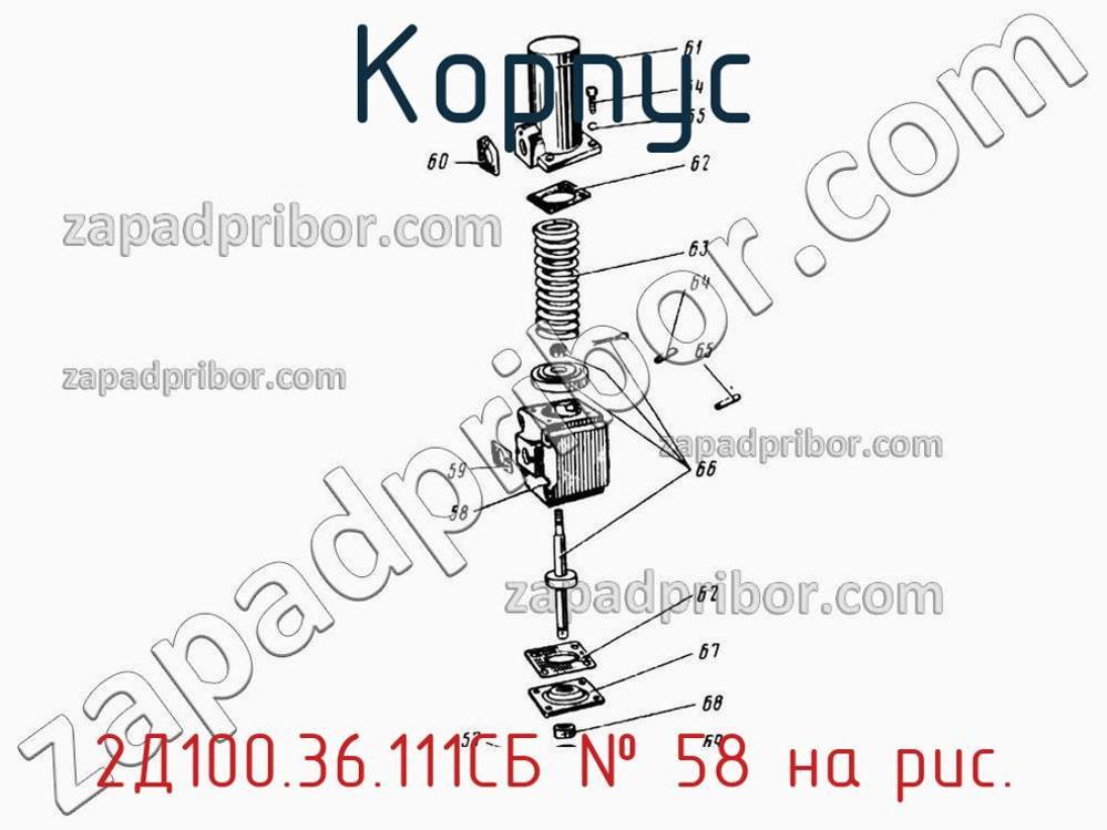 Мы даем гарантию на отсутствие брака или других несоответствий технической документации. Для приобретения 2Д100.36.111СБ обращайтесь в наш отдел продаж. Информацию о цене, наличию, срокам доставки, гарантии и любые другие вопросы уточняйте у наших менеджеров. Корпус с перегородкой, номер 58 на чертеже, (56-69) Регулятор 2Д100.36.1СБ и другие запасные части для 49 (Ч 26/26) , а также другие корпуса и похожие изделия представлены на сайте zapadpribor.com.