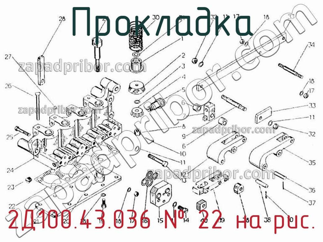 Наш отдел технического контроля гарантирует отсутствие брака и других несоответствий технической документации у всех прокладок представленных на нашем сайте. По вопросам покупки 2Д100.43.036 обращайтесь в отдел продаж. Для информации о цене, наличии, сроках поставки, сроке гарантии и по других вопросах обращайтесь по телефонам, указанным в контактах или оставьте запрос через форму обратной связи. Прокладка 2Д100.43.036, номер 22 на чертеже, Управление регулятором 43гр.-048 и другие запасные части для ПДГ4А) , а также другие прокладки и похожие изделия представлены на сайте zapadpribor.com.