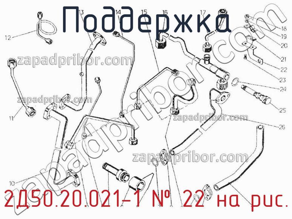Наш отдел технического контроля гарантирует отсутствие брака или других несоответствий в технической документации или комплектации всех поддержек представленных на нашем сайте. Чтобы заказать 2Д50.20.021-1 обращайтесь в отдел продаж. Чтобы узнать цену, наличие, сроки поставки, срок гарантии и другие вопросы позвоните по телефонам указанным в контактах или оставьте заявку через форму обратной связи. Поддержка 2Д50.20.021-1, номер 22 на чертеже, Трубопровод масляный Д50.20 и другие запасные части для ПДГ4А) , а также другие поддержки и похожие изделия представлены на сайте zapadpribor.com.