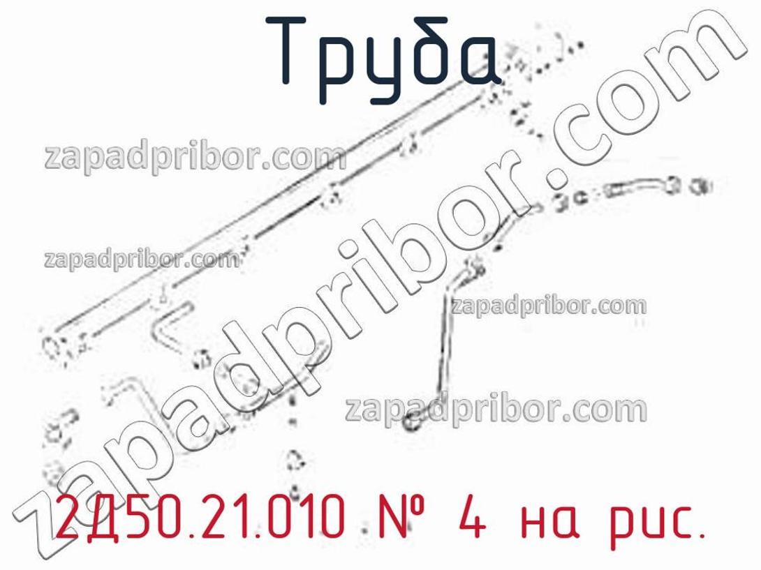 ОТК компании гарантирует отсутствие брака у всех труб представленных на нашем сайте. Для покупки 2Д50.21.010 обратитесь в отдел продаж. Относительно информации о цене, наличии, сроках поставки, гарантии обращайтесь по телефонам, указанным в контактах или оставьте запрос через форму обратной связи. Труба 2Д50.21.010, номер 4 на чертеже, Трубопровод водяной 5Д50.21 и другие запасные части для ПДГ4А) , а также другие трубы и похожие изделия представлены на сайте zapadpribor.com.