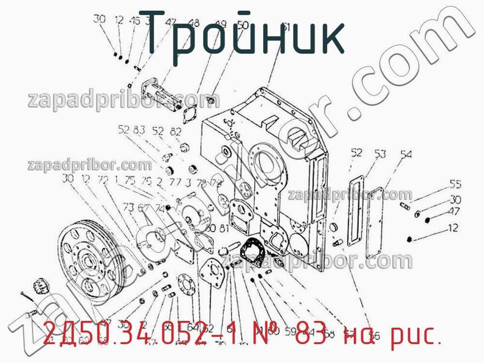 Мы даем гарантию на отсутствие брака или других несоответствий технической документации. По вопросам приобретения 2Д50.34.052-1 обращайтесь в отдел продаж. Наши менеджеры предоставят всю интересующую Вас информацию по поводу цены, наличия, сроков доставки, гарантии или ответят на любые другие вопросы. Тройник 2Д50.34.052-1, номер 83 на чертеже, Привод масляного насоса, вентилятора и фильтры 34 гр.-039 и другие запасные части для ПДГ4А) , а также другие тройники и похожие изделия представлены на сайте zapadpribor.com.