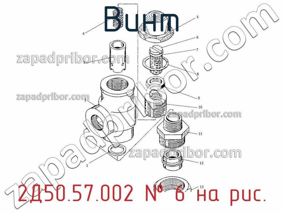 Наш отдел технического контроля перед отгрузкой тестирует каждый прибор в лаборатории на соответствие всем техническим характеристикам и требованиям. Чтобы заказать 2Д50.57.002 свяжитесь с нашим отделом продаж. Также вы всегда можете позвонить нашим менеджерам чтобы получить более подробную информацию. Винт 2Д50.57.002, номер 6 на чертеже, Комплект монтажных частей 57гр-067 и другие запасные части для ПДГ4А) , а также другие винты и похожие изделия представлены на сайте zapadpribor.com.