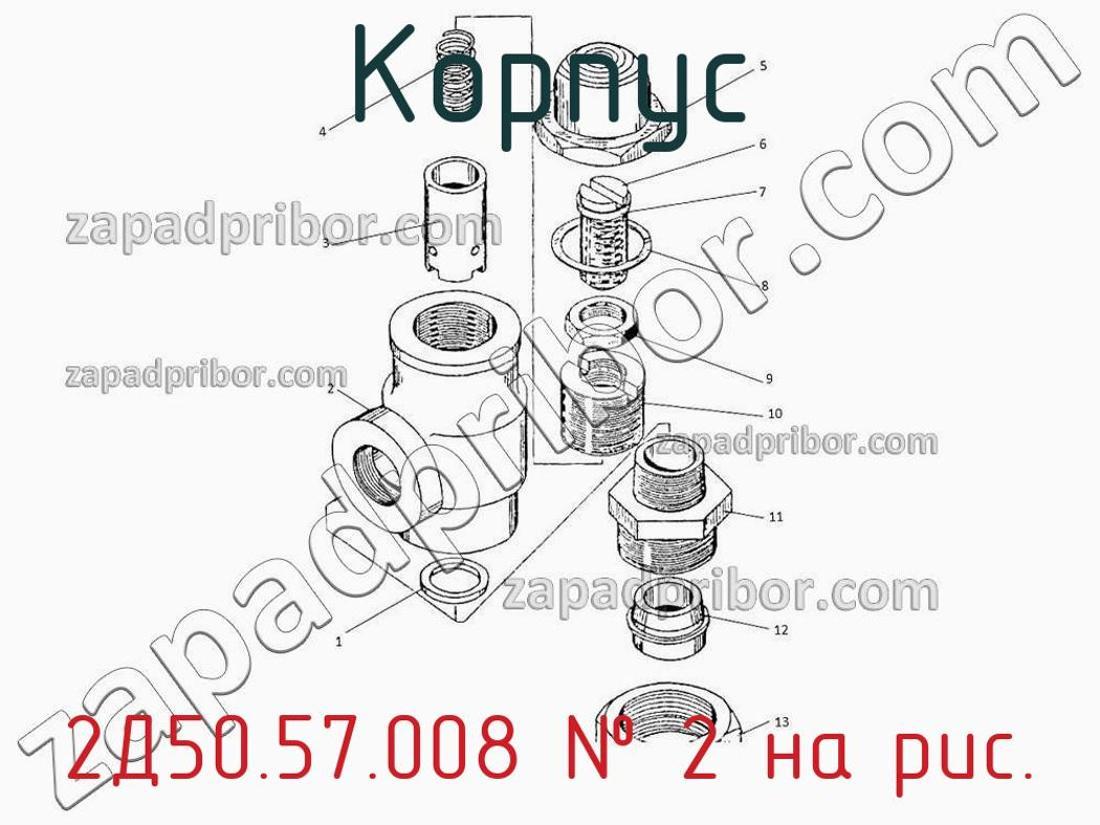 Мы даем гарантию на отсутствие брака или других несоответствий технической документации. По вопросам приобретения 2Д50.57.008 обращайтесь в отдел продаж. Наши менеджеры предоставят всю интересующую Вас информацию по поводу цены, наличия, сроков доставки, гарантии или ответят на любые другие вопросы. Корпус 2Д50.57.008, номер 2 на чертеже, Комплект монтажных частей 57гр-067 и другие запасные части для ПДГ4А) , а также другие корпуса и похожие изделия представлены на сайте zapadpribor.com.