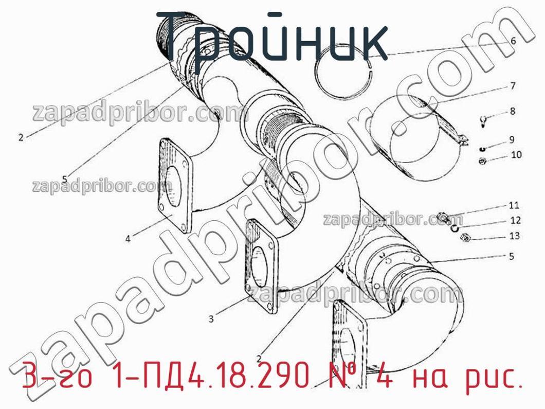 ОТК компании гарантирует отсутствие дефектов у всех тройников на нашем сайте. Для покупки 3-го 1-ПД4.18.290 свяжитесь с отделом продаж. Менеджеры компании предоставят всю информацию о цене, наличии, сроках доставки, гарантии и ответят на любые другие вопросы. Тройник 3-го цилиндра 1-ПД4.18.290, номер 4 на чертеже, Коллекторы выхлопные 18гр-022 и другие запасные части для ПДГ4А) , а также другие тройники и похожие изделия представлены на сайте zapadpribor.com.