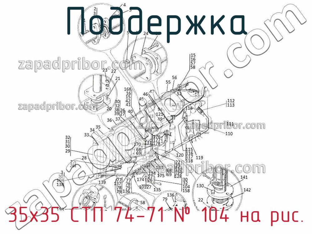 ОТК компании гарантирует отсутствие дефектов у всех поддержек на нашем сайте. Для покупки 35х35 СТП 74-71 свяжитесь с отделом продаж. Менеджеры компании предоставят всю информацию о цене, наличии, сроках доставки, гарантии и ответят на любые другие вопросы. Поддержка 35х35 СТП 74-71, номер 104 на чертеже, Трубопровод водяной системы часть 1 и другие запасные части для , а также другие поддержки и похожие изделия представлены на сайте zapadpribor.com.