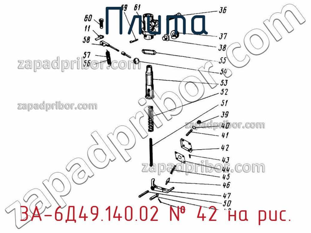 ОТК компании гарантирует отсутствие дефектов у всех плит на нашем сайте. Для покупки 3А-6Д49.140.02 свяжитесь с отделом продаж. Менеджеры компании предоставят всю информацию о цене, наличии, сроках доставки, гарантии и ответят на любые другие вопросы. Плита, номер 42 на чертеже, Выключатель предельный 3А-6Д49.140спч-04 ч.2 и другие запасные части для 49 (Ч 26/26) , а также другие плиты и похожие изделия представлены на сайте zapadpribor.com.