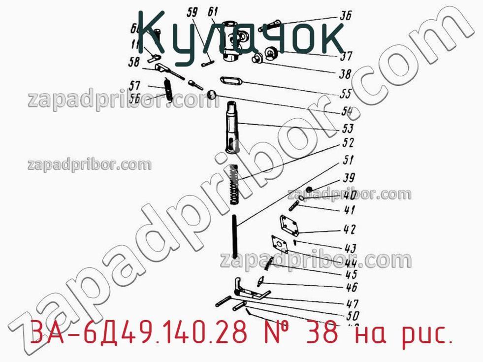 Наш отдел технического контроля гарантирует отсутствие брака или других несоответствий в технической документации или комплектации всех кулачков представленных на нашем сайте. Чтобы заказать 3А-6Д49.140.28 обращайтесь в отдел продаж. Чтобы узнать цену, наличие, сроки поставки, срок гарантии и другие вопросы позвоните по телефонам указанным в контактах или оставьте заявку через форму обратной связи. Кулачок, номер 38 на чертеже, Выключатель предельный 3А-6Д49.140спч-04 ч.2 и другие запасные части для 49 (Ч 26/26) , а также другие кулачки и похожие изделия представлены на сайте zapadpribor.com.