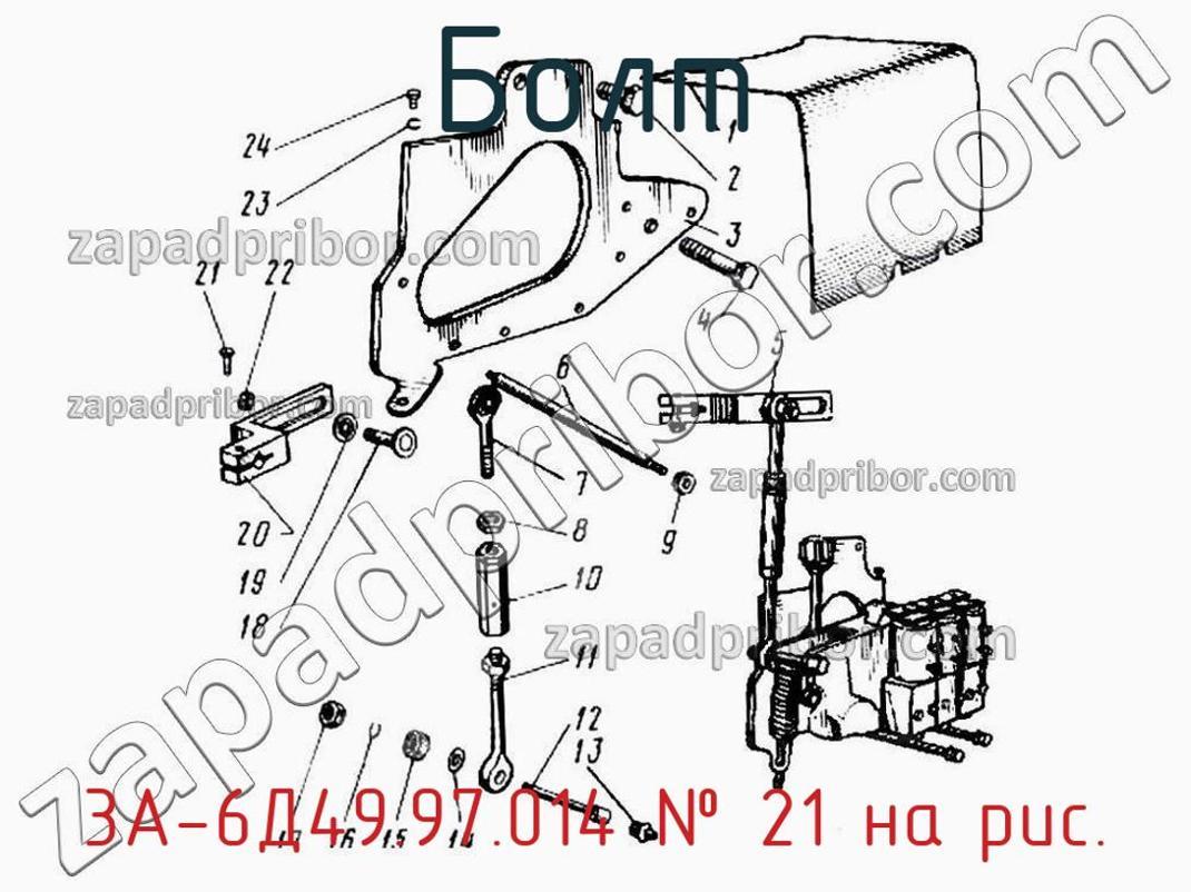 Наш отдел технического контроля перед отгрузкой тестирует каждый прибор в лаборатории на соответствие всем техническим характеристикам и требованиям. Чтобы заказать 3А-6Д49.97.014 свяжитесь с нашим отделом продаж. Также вы всегда можете позвонить нашим менеджерам чтобы получить более подробную информацию. Болт, номер 21 на чертеже, Управление регулятором 3А-6Д49.97.000спч-4 и другие запасные части для 49 (Ч 26/26) , а также другие болты и похожие изделия представлены на сайте zapadpribor.com.