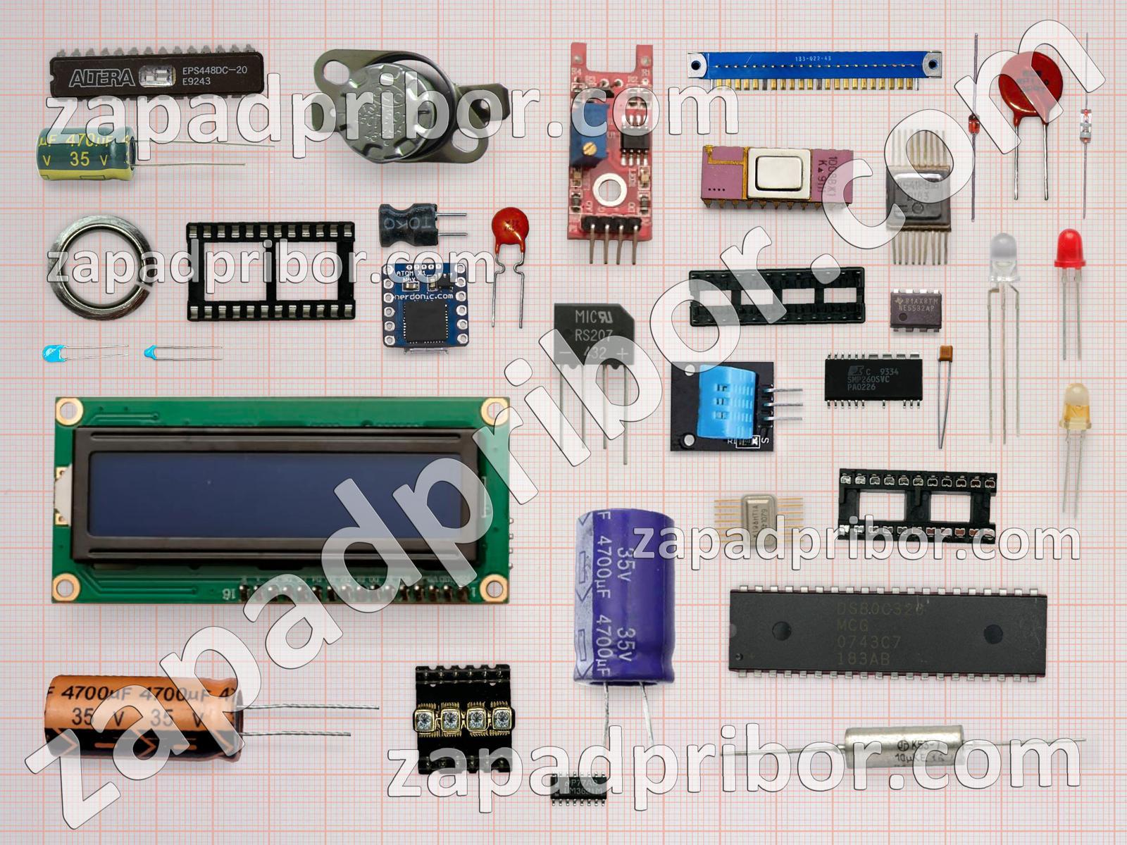 Кроме этих радиодеталей на нашем сайте вы сможете найти большой перечень компонентов. Осуществляйте поиск по основным типам радиодеталей таких как микросхема, адаптер, соединитель, резистор, датчик, светодиод, реле, тумблер, контакты, трансформатор, усилитель, дисплей, конденсатор, индуктивность, тиристор, разъем, преобразователь, фотодиод, кнопка, переключатель, диодный мост, экран, транзистор, индикатор, резонатор, дроссель, колодки, диод и другие.