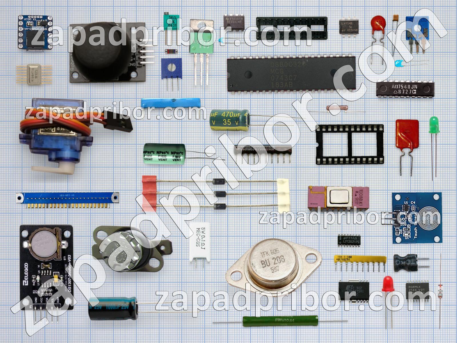Кроме этих радиодеталей на нашем сайте вы сможете найти большой перечень компонентов. Осуществляйте поиск по основным типам радиодеталей таких как усилитель, резистор, светодиод, преобразователь, резонатор, контакты, соединитель, переключатель, диод, разъем, тумблер, дисплей, кнопка, микросхема, дроссель, колодки, конденсатор, тиристор, трансформатор, индуктивность, адаптер, экран, датчик, реле, транзистор, фотодиод, индикатор, диодный мост и другие.
