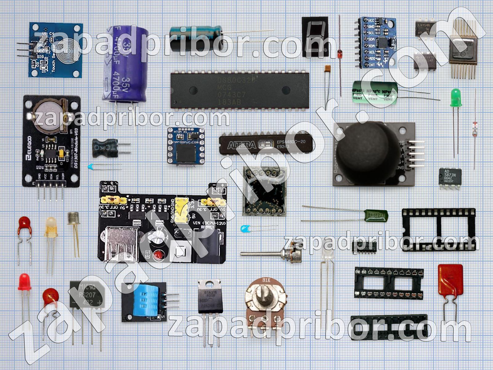 Кроме этих радиодеталей на нашем сайте вы сможете найти большой перечень компонентов. Осуществляйте поиск по основным типам радиодеталей таких как дроссель, трансформатор, индуктивность, микросхема, усилитель, конденсатор, резистор, дисплей, контакты, кнопка, экран, индикатор, фотодиод, преобразователь, тумблер, диод, колодки, резонатор, соединитель, диодный мост, транзистор, разъем, тиристор, переключатель, светодиод, реле, датчик, адаптер и другие.