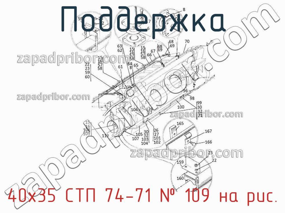 Наш отдел технического контроля гарантирует отсутствие брака или других несоответствий в технической документации или комплектации всех поддержек представленных на нашем сайте. Чтобы заказать 40х35 СТП 74-71 обращайтесь в отдел продаж. Чтобы узнать цену, наличие, сроки поставки, срок гарантии и другие вопросы позвоните по телефонам указанным в контактах или оставьте заявку через форму обратной связи. Поддержка 40х35 СТП 74-71, номер 109 на чертеже, Трубопровод водяной системы часть 2 и другие запасные части для , а также другие поддержки и похожие изделия представлены на сайте zapadpribor.com.