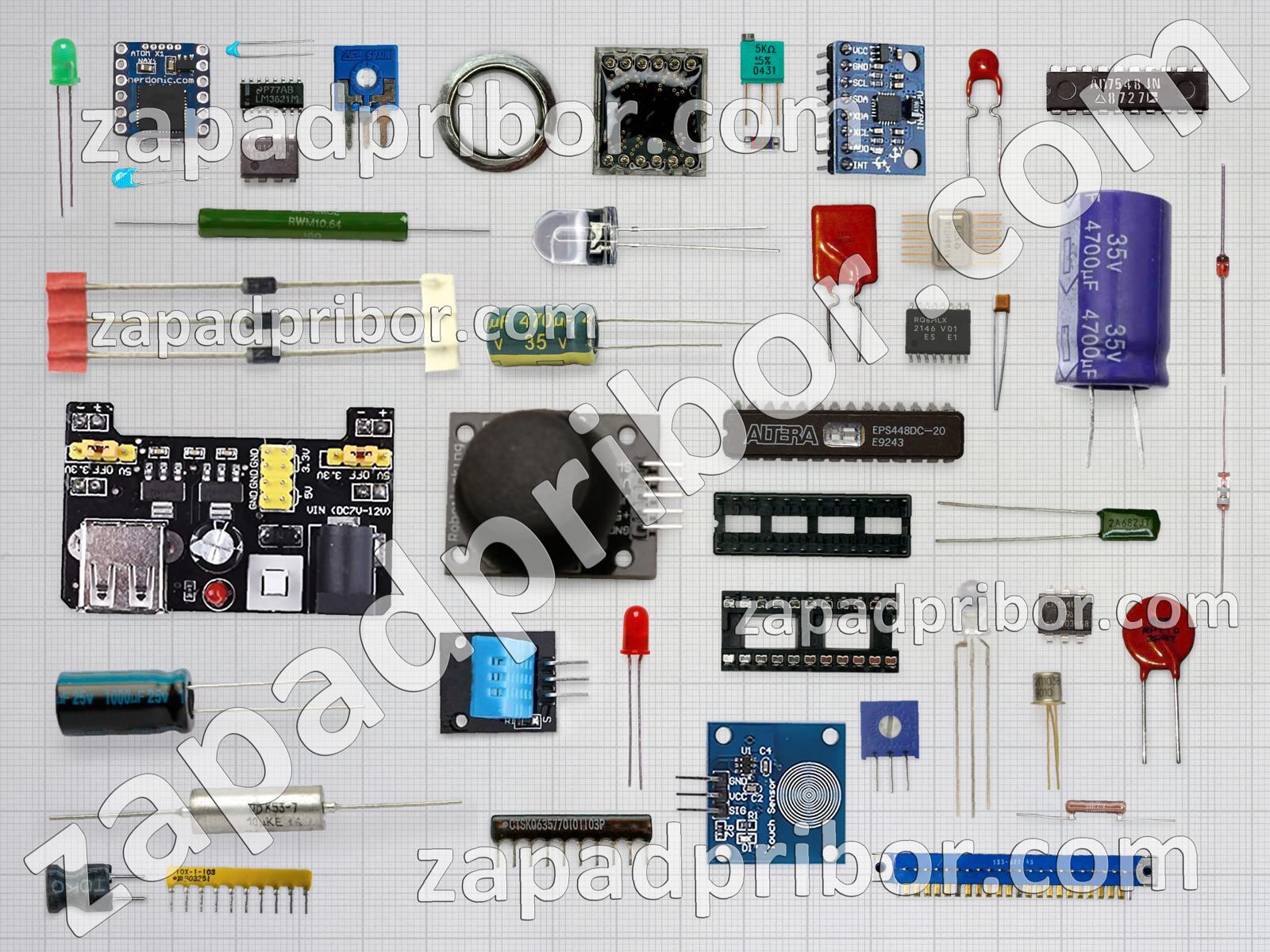 Кроме этих радиодеталей на нашем сайте вы сможете найти большой перечень компонентов. Осуществляйте поиск по основным типам радиодеталей таких как резонатор, диод, экран, трансформатор, дисплей, резистор, реле, разъем, колодки, тумблер, соединитель, переключатель, датчик, диодный мост, кнопка, индуктивность, конденсатор, контакты, преобразователь, светодиод, тиристор, фотодиод, адаптер, микросхема, транзистор, усилитель, индикатор, дроссель и другие.