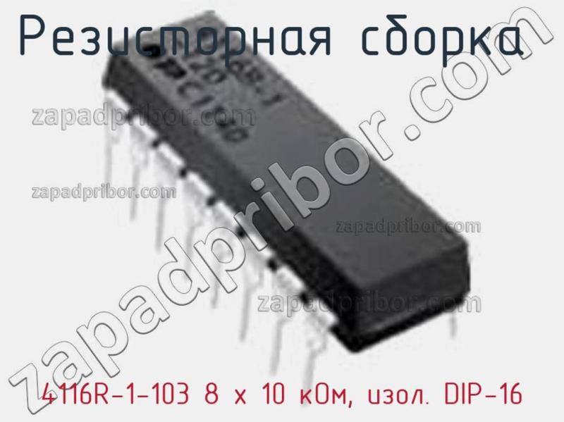 Основные характеристики резисторной сборки 4116R-1-103 8 x 10 кОм, изол. DIP-16 : 4116R-1-103 8 x 10 кОм, изол. DIP-16 Резисторные сборки и массивы 16 PIN ISO. 10K OHM