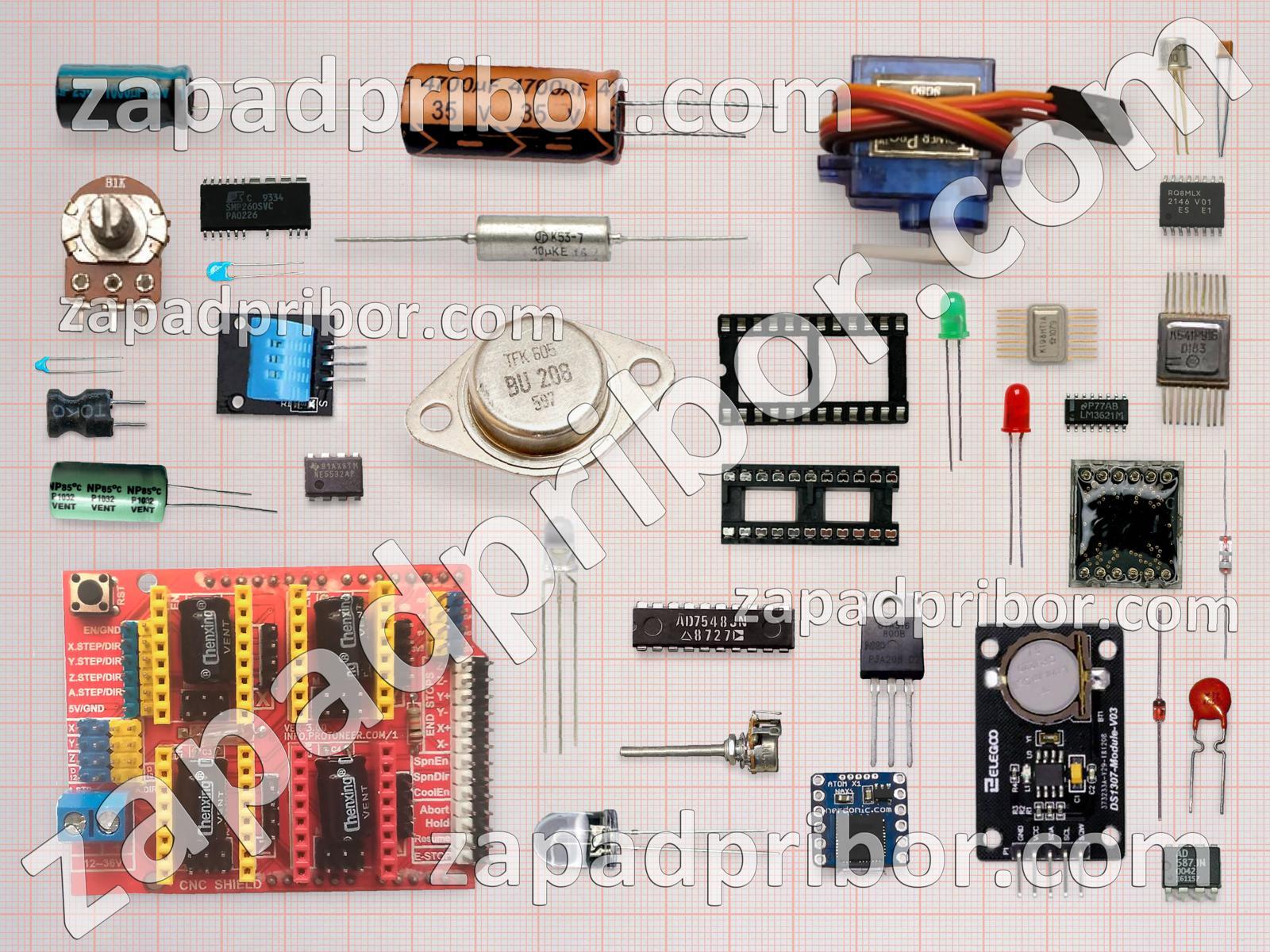 Кроме этих радиодеталей на нашем сайте вы сможете найти большой перечень компонентов. Осуществляйте поиск по основным типам радиодеталей таких как индикатор, экран, индуктивность, конденсатор, транзистор, колодки, трансформатор, соединитель, светодиод, тумблер, резистор, разъем, дисплей, фотодиод, переключатель, резонатор, датчик, усилитель, реле, диодный мост, преобразователь, контакты, кнопка, дроссель, микросхема, адаптер, тиристор, диод и другие.