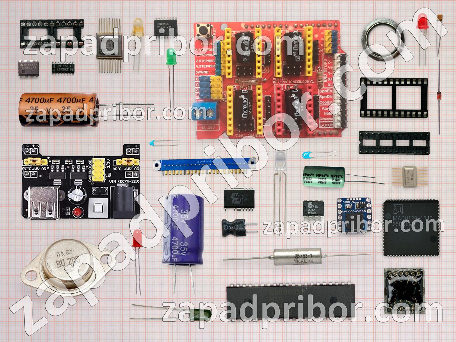 Кроме этих радиодеталей на нашем сайте вы сможете найти большой перечень компонентов. Осуществляйте поиск по основным типам радиодеталей таких как конденсатор, фотодиод, датчик, усилитель, резистор, транзистор, переключатель, микросхема, соединитель, тиристор, индикатор, адаптер, реле, экран, дроссель, резонатор, разъем, дисплей, тумблер, трансформатор, диод, колодки, диодный мост, кнопка, индуктивность, светодиод, преобразователь, контакты и другие.
