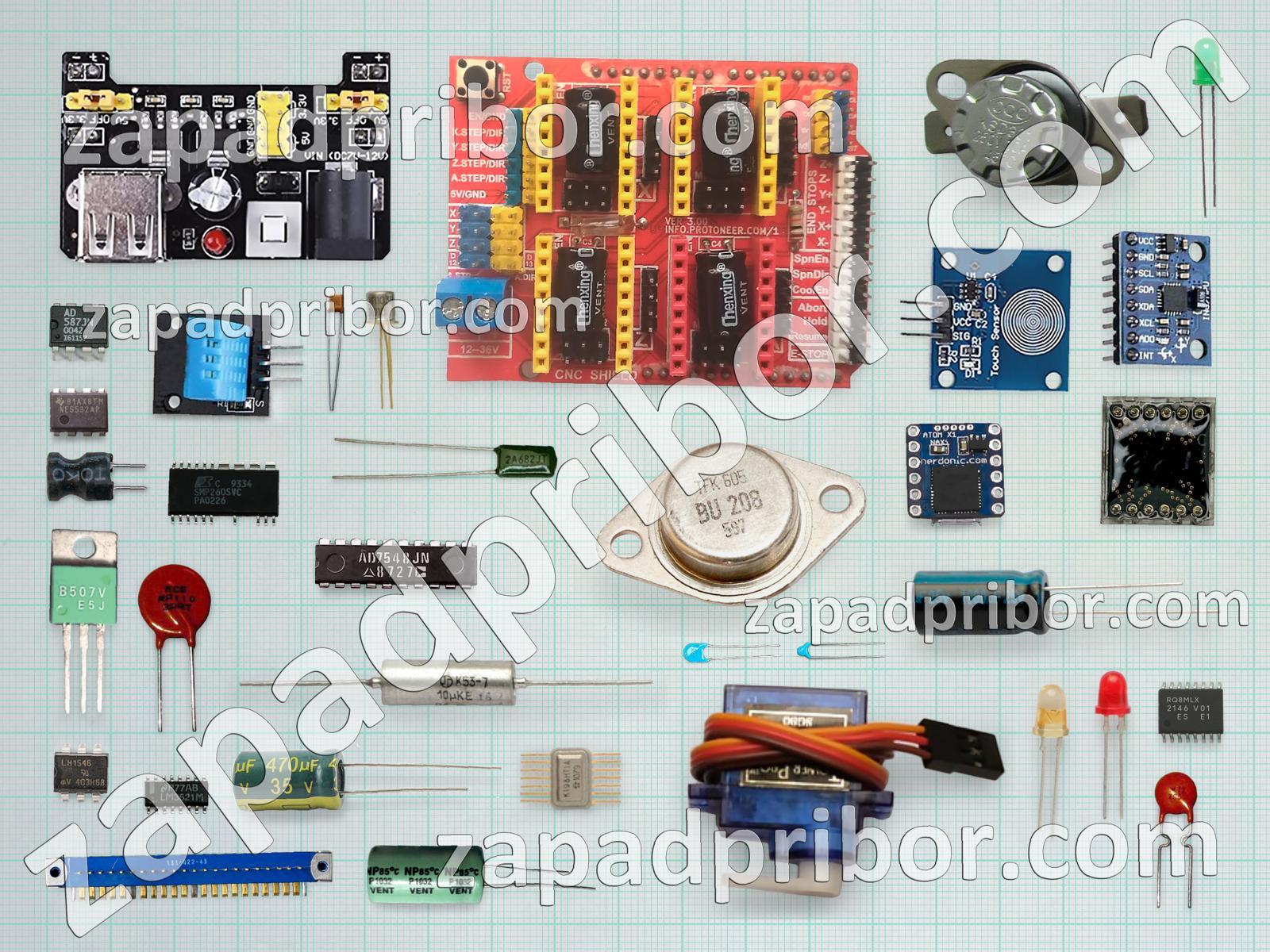 Кроме этих радиодеталей на нашем сайте вы сможете найти большой перечень компонентов. Осуществляйте поиск по основным типам радиодеталей таких как соединитель, кнопка, дроссель, резистор, экран, преобразователь, индикатор, адаптер, контакты, переключатель, тумблер, трансформатор, резонатор, дисплей, диод, усилитель, тиристор, индуктивность, фотодиод, диодный мост, микросхема, колодки, транзистор, датчик, реле, конденсатор, разъем, светодиод и другие.