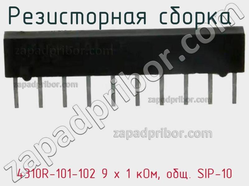 Основные характеристики резисторной сборки 4310R-101-102 9 x 1 кОм, общ. SIP-10 : 4310R-101-102 9 x 1 кОм, общ. SIP-10 Резисторные сборки и массивы 1K 10Pin 2% Bussed