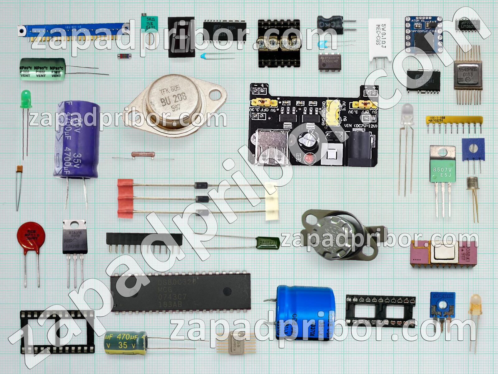 Кроме этих радиодеталей на нашем сайте вы сможете найти большой перечень компонентов. Осуществляйте поиск по основным типам радиодеталей таких как светодиод, индуктивность, трансформатор, колодки, резонатор, конденсатор, контакты, усилитель, дроссель, диодный мост, соединитель, микросхема, дисплей, кнопка, экран, реле, переключатель, датчик, диод, разъем, тумблер, резистор, индикатор, преобразователь, адаптер, тиристор, фотодиод, транзистор и другие.