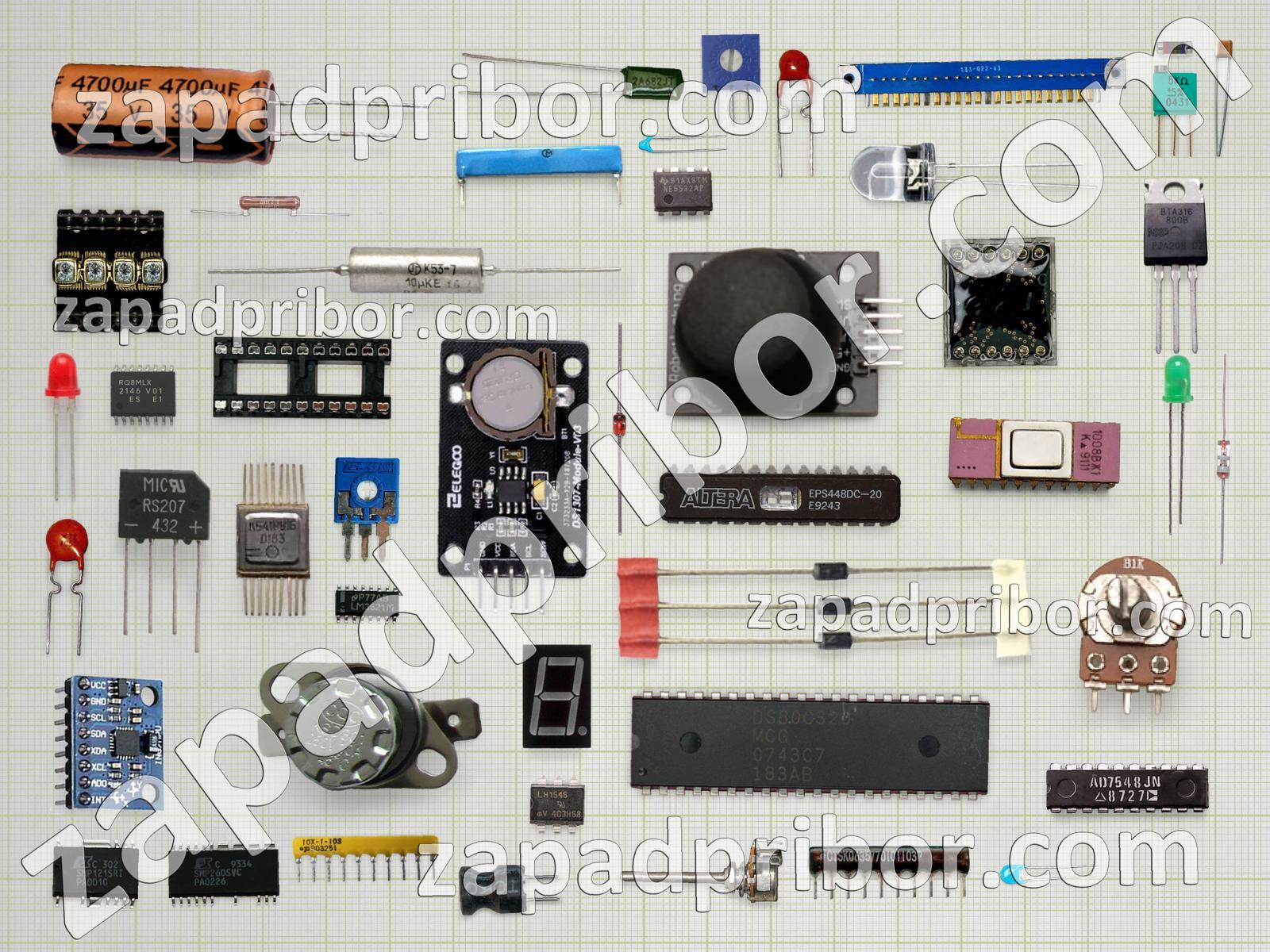 Кроме этих радиодеталей на нашем сайте вы сможете найти большой перечень компонентов. Осуществляйте поиск по основным типам радиодеталей таких как дисплей, диодный мост, контакты, микросхема, адаптер, экран, соединитель, переключатель, дроссель, колодки, тумблер, индуктивность, диод, транзистор, реле, разъем, конденсатор, датчик, фотодиод, резистор, усилитель, резонатор, преобразователь, кнопка, тиристор, светодиод, трансформатор, индикатор и другие.