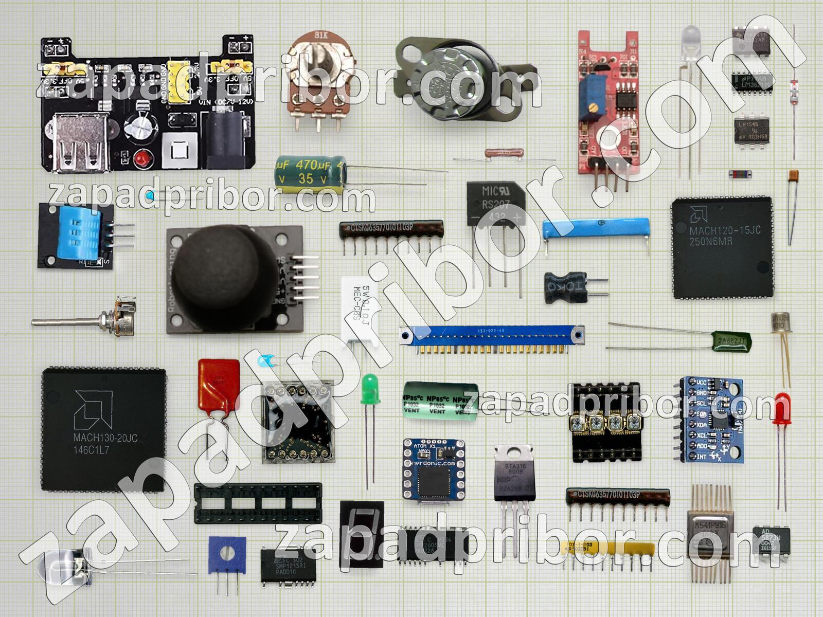 Кроме этих радиодеталей на нашем сайте вы сможете найти большой перечень компонентов. Осуществляйте поиск по основным типам радиодеталей таких как транзистор, резистор, светодиод, трансформатор, колодки, адаптер, кнопка, реле, диодный мост, дроссель, индикатор, соединитель, диод, резонатор, контакты, индуктивность, тумблер, дисплей, микросхема, датчик, конденсатор, преобразователь, переключатель, фотодиод, тиристор, разъем, экран, усилитель и другие.